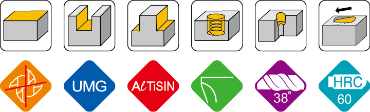 - 刀型設計I:採用特殊不等距設計, 可降低切削時的震動, 提升加工穩定性。