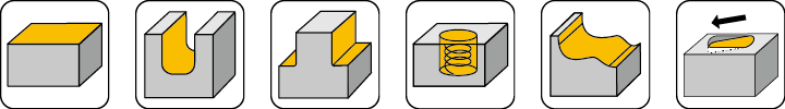 - 應用材質:碳素鋼, 十字鋼, 合金鋼, 調質鋼, 不銹鋼, 鑄鐵, 鈦合金, 鎳基合金。